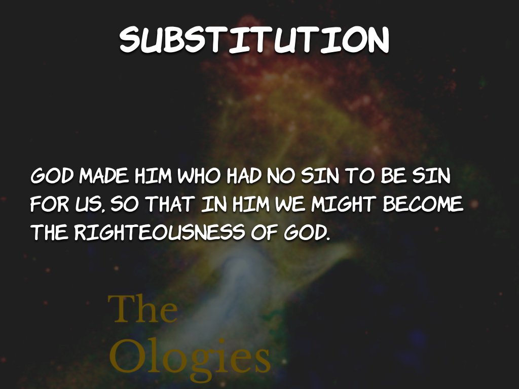 Lesson #17 in The Ologies on the Christian doctrine of substitution. The-Ologies-17-SubstitutionDownload Share this: Click to share on X (Opens in new window) X Click to share on Facebook (Opens in new window) Facebook Click to share on Pinterest (Opens in new window) Pinterest Click to email a link to a friend (Opens in new window) Email Click to share on Tumblr (Opens in new window) Tumblr Click to share on Reddit (Opens in new window) Reddit Click to print (Opens in new window) Print Click to share on LinkedIn (Opens in new window) LinkedIn Click to share on WhatsApp (Opens in new window) WhatsApp Like Loading...